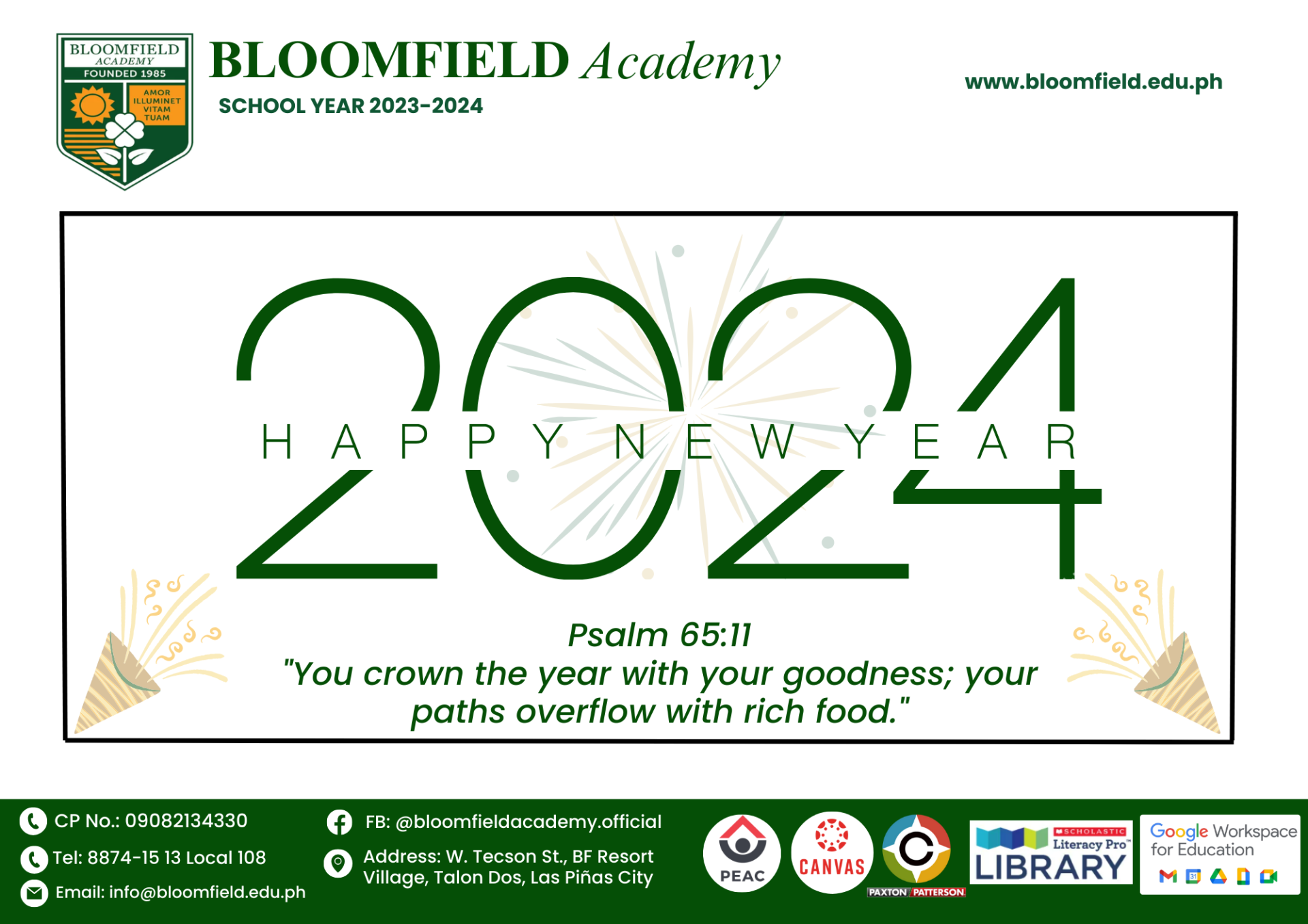 Your search result: All clubs (5) parent testimonials (5) Uncategorized (147) Uncategorized Entrepreneurship Event January 9 and 12, 2024 Date January 23, 2024 Reading Time < 1 Min Read The unforgettable Grade 12 Entrepreneurship Event recently took us on a flavorful journey, elevating Filipino... Uncategorized Jan 3 2024 Date January 3, 2024 Reading Time < 1 Min Read Uncategorized Happy New Year Date December 31, 2023 Reading Time < 1 Min Read Uncategorized Rizal Day Date December 30, 2023 Reading Time < 1 Min Read Uncategorized ALPPS/LPSAA Sports Competition Date November 29, 2023 Reading Time < 1 Min Read Another pride of Bloomfield Academy! Congratulations to our students who won the ALPPS/LPSAA sports competitions!... Uncategorized Bonifacio Day Date November 27, 2023 Reading Time < 1 Min Read Born on November 30, 1863, in Tondo, Manila, Andrés Bonifacio, one of our national heroes,... Uncategorized BA Activities November 24 Date November 24, 2023 Reading Time < 1 Min Read BA's week was a harmonious blend of community building, advocacy for kindness, and intellectual exploration,... 1 … 15 16 17 18 19 … 21