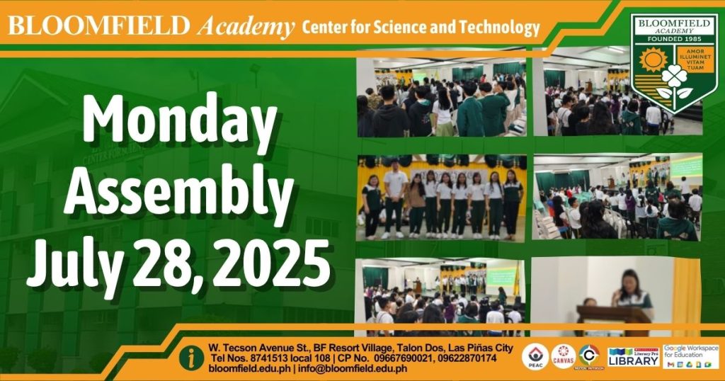 Bloomfield Academy kicked off the week with an engaging Monday assembly, expertly led by our vibrant Grade 8 students and their dedicated adviser, Ms. Maria Joy A. Tacogue. We proudly celebrated Chantelle Eliza V. Soria from Grade 11 STEM strand, and her remarkable achievement in passing the qualification round for the International Astronomy and Astrophysics Competition, a true testament to her hard work and intellect. The energy continued as Ms. Thelma O. Marquez, our Student Council Moderator, enthusiastically introduced the new set of student council members, eager to see their leadership shine throughout the school year. Bloomfieldians, we present to you our BA Student Council for this SY 2025-2026: